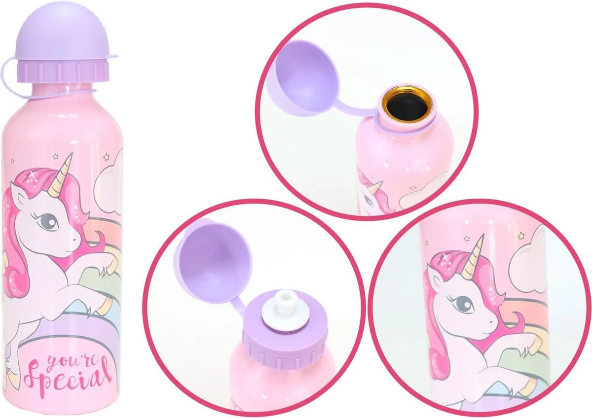 Unicorn broodtrommel met roze aluminium kinderdrinkfles