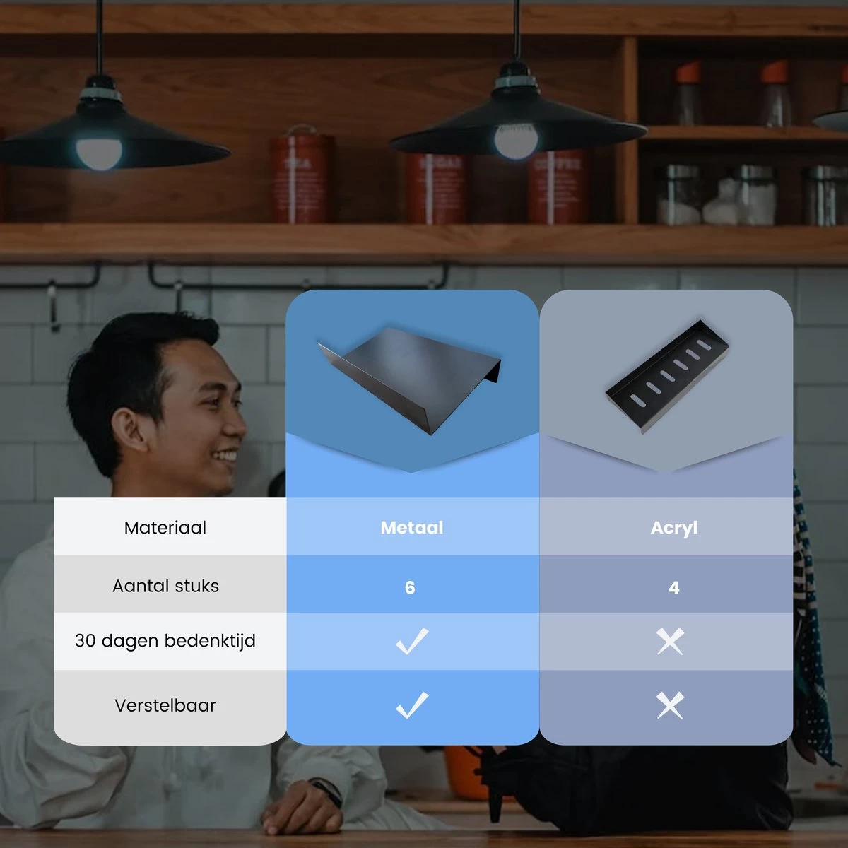 De kruiden organizer is gemaakt van sterk metaal en zal daardoor veel langer meegaan dan de plastic varianten. Doordat het materiaal zwaarder is dan plastic, zal het ook niet gemakkelijk verschuiven.