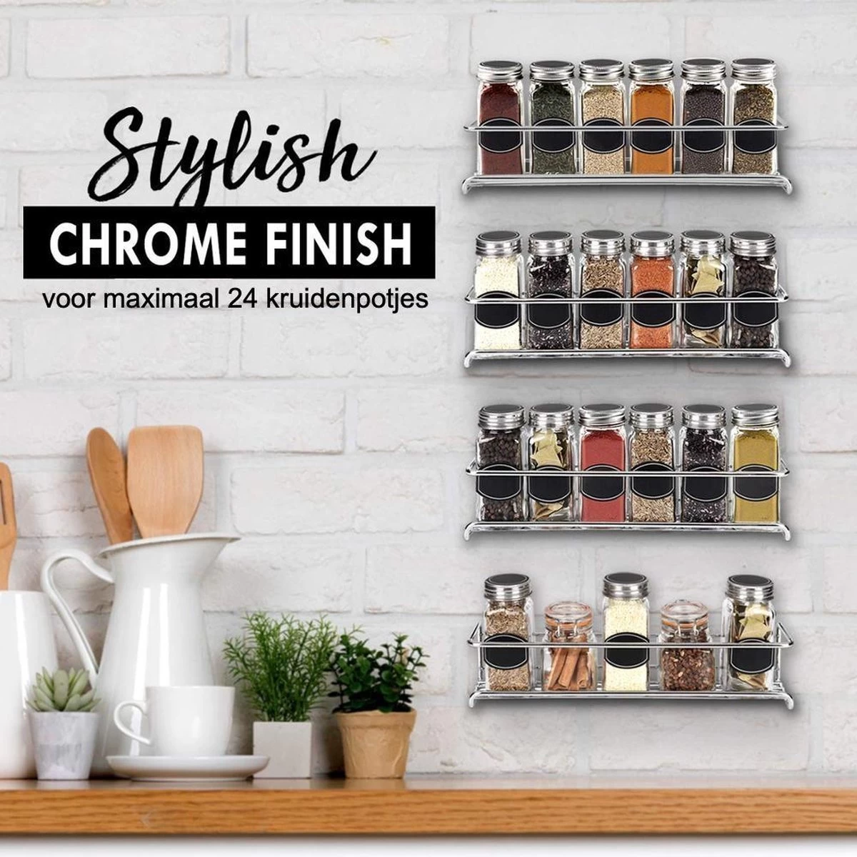 Creëer ruimte in je keuken met deze vier kruiden- en specerijenrekken. Organiseer je keuken op een nette, ruimtebesparende en overzichtelijke manier met dit functionele ophangbare keuken accessoire. Deze keuken organizer biedt ruimte tot wel 24 kruidenpotjes. Het gebruiksvriendelijke kruiden rek bevat een montage set en is hierdoor snel en makkelijk te installeren, waar je maar wilt. Ideaal voor elke keuken, aan de muur of in je keukenkastjes.