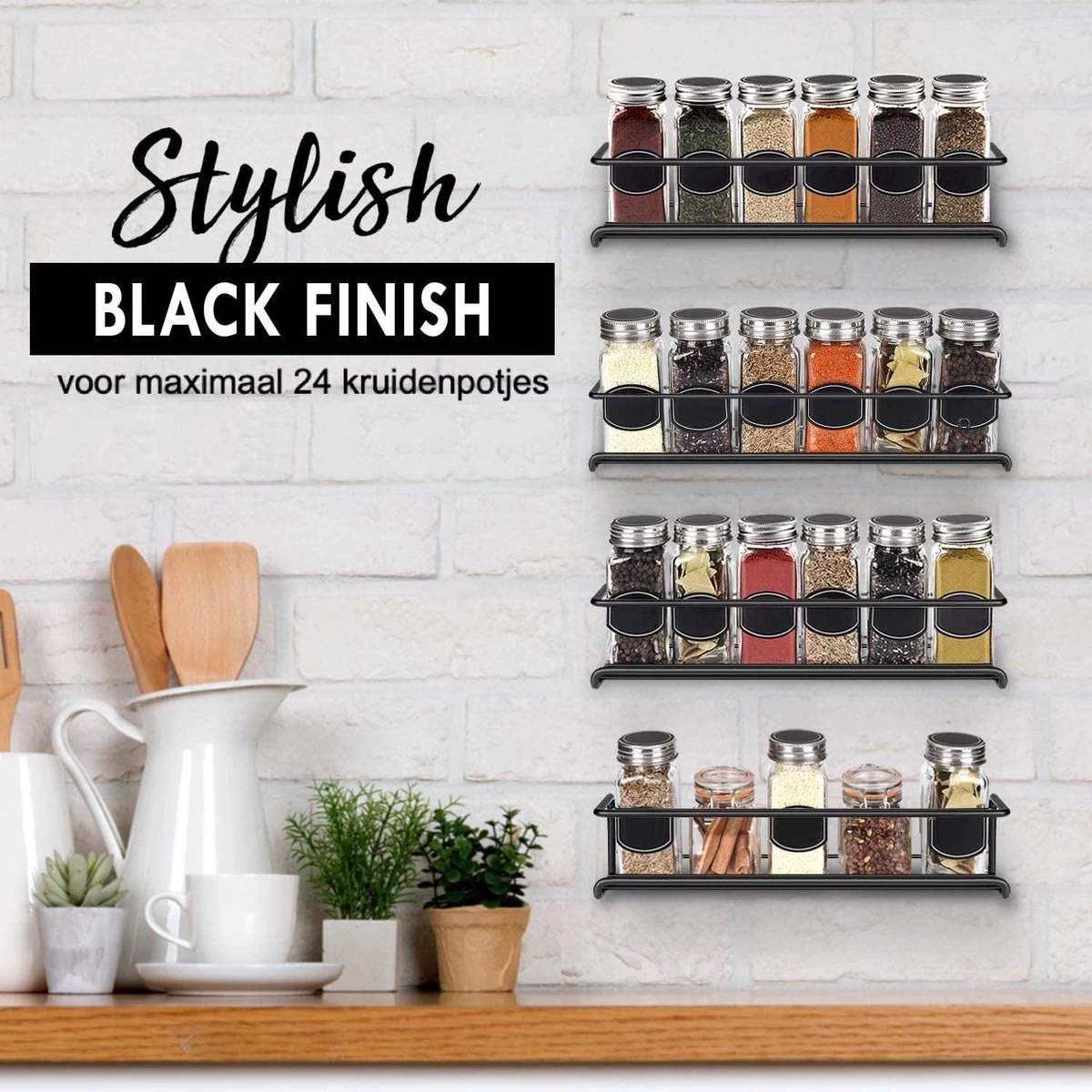 Op deze zwarte kruidenrekken kan je 24 specerijenpotjes plaatsen. Een goedkope, voordelige en ruimtebesparende oplossing voor het opbergen van al je kruiden.