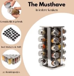 QUVIO Groot Kruidenrek Staal – Ophangbaar – Voor 32 Kruidenpotjes – 4 Laags – Zwart