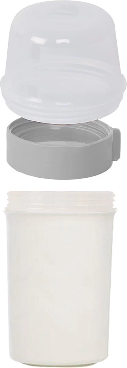 De yoghurtbeker bestaat uit twee losse bakjes die aan elkaar gedraaid kunnen worden tot één geheel met de deksel als tussenschot. Bewaar in het ene bakje bijvoorbeeld de yoghurt en in de andere de muesli zodat het knapperig blijft.